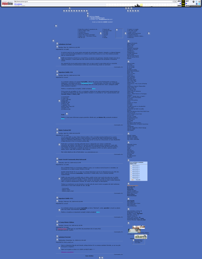 Site-ul Anime-XG preluat de pe Wayback Archive
