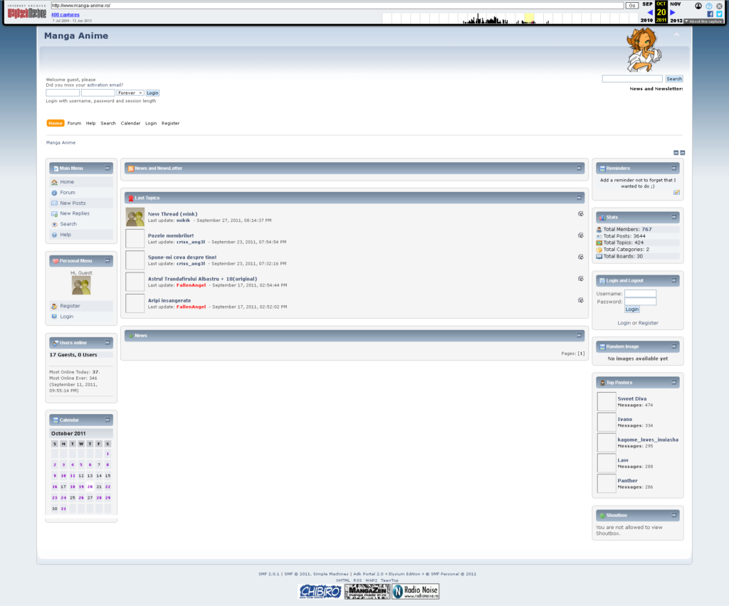 Site-ul Manga-Anime preluat de pe Wayback Archive