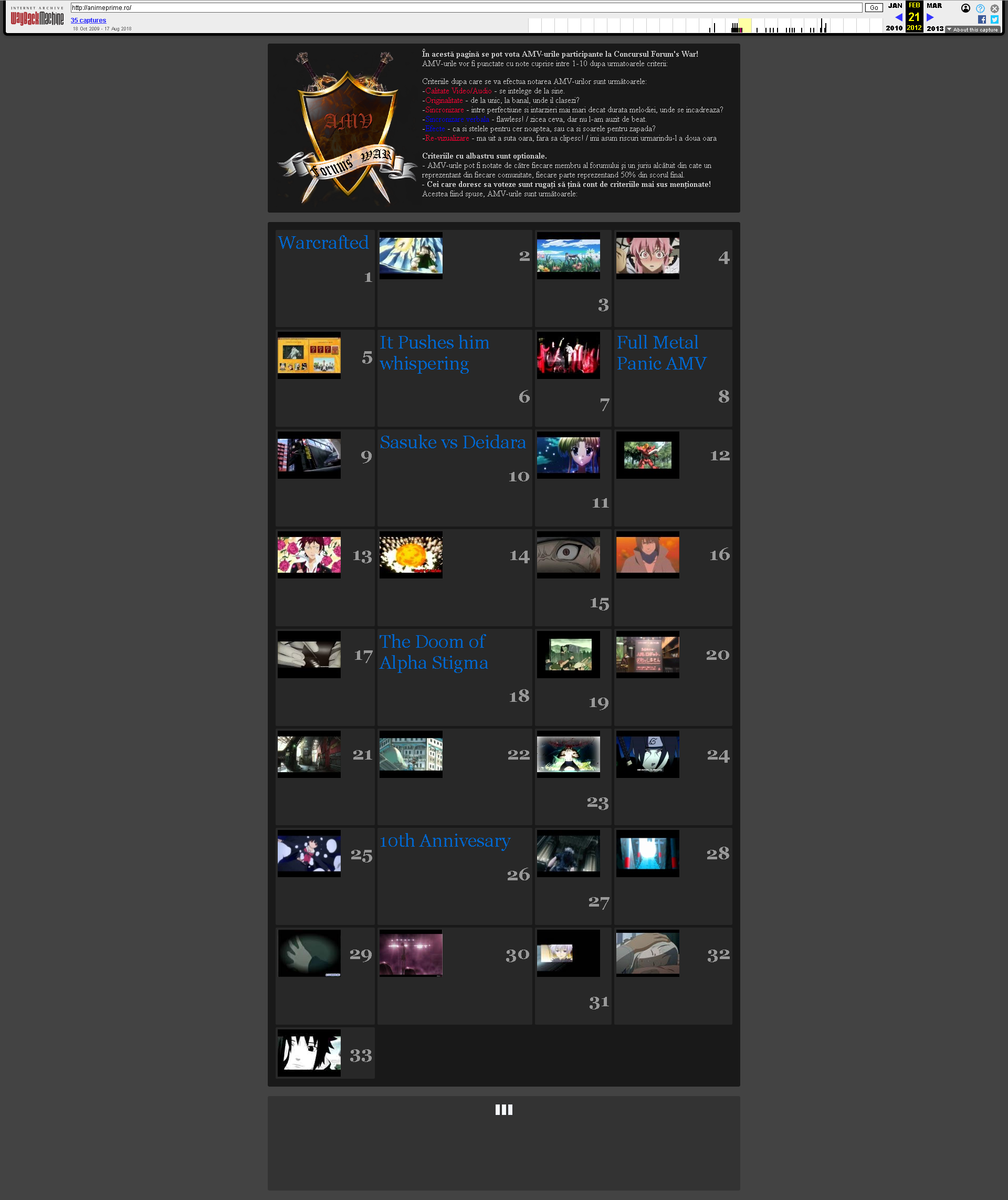 Site-ul AnimePrime.ro preluat de pe Wayback Archive