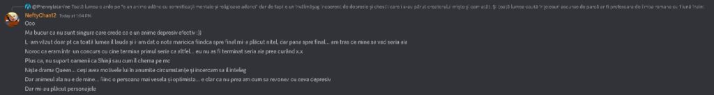 Bineînțeles, personajul acesta a primit răspuns de la o persoană care a adus foarte multă valoare comunității Anime din România: