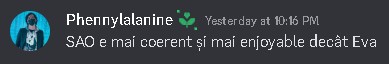 Mai bine: SAO e pentru cultura anime ce sunt manelele pentru industria muzicală. Un gunoi și o vacă de muls, doar că nu dă lapte, ci bani. Oricum știm cu toții că ce e prost prinde la public.