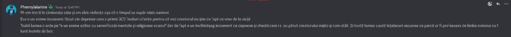 Ca să înțelegi Eva nu trebuie să vezi doar seria anime, trebuie să vezi și filmele. Toate. Nu am să-i explic acestui individ importanța anime-ului Neon Genesis Evangelion și cum a influențat industria Anime, pentru că aș purta un monolog.