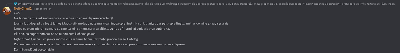 Ca să înțelegi Eva nu trebuie să vezi doar seria anime, trebuie să vezi și filmele. Toate. Nu am să-i explic acestui individ importanța anime-ului Neon Genesis Evangelion și cum a influențat industria Anime, pentru că aș purta un monolog.