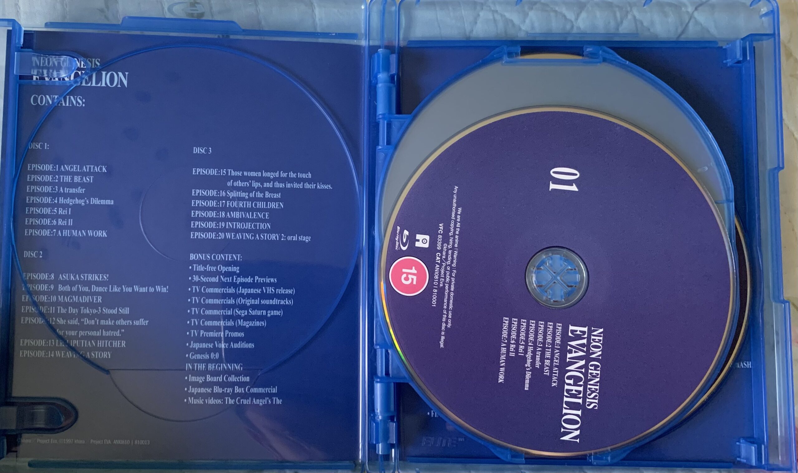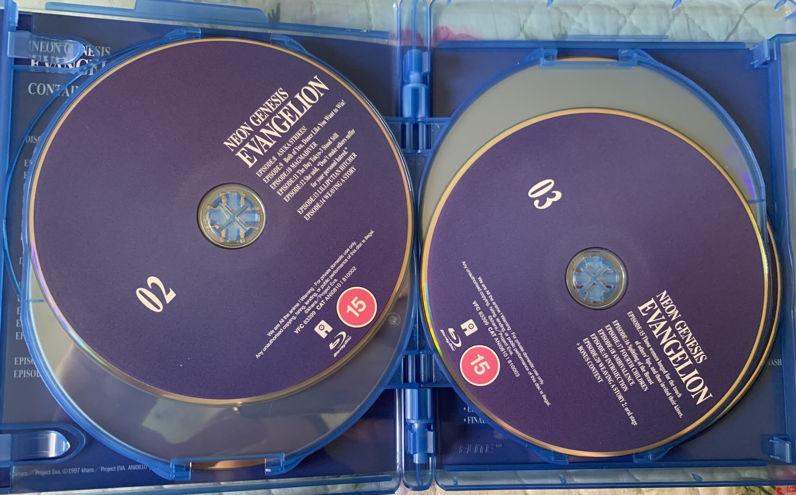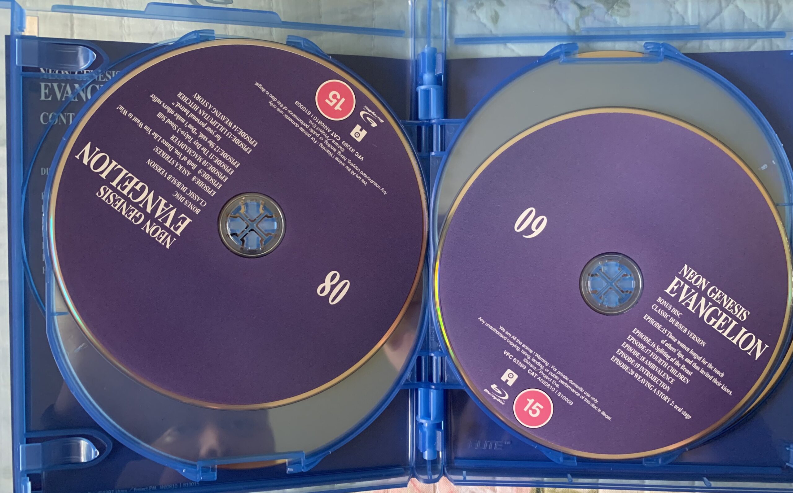 Conținutul de pe discuri este fix același cu cel de pe edițiile ”Ultimate” și ”Ediția colecționarului”. 11 discuri produse de echipa lui Justin Sevakis, MediaOCD. Dacă nu erau produse de acești oameni care pun accentul pe calitate și nu pe cantitate (la tine mă uit, Crunchyroll, și la tine, VIZ), probabil aș fi cumpărat ediția italiană care e produsă, din câte știu de mp3dom.
