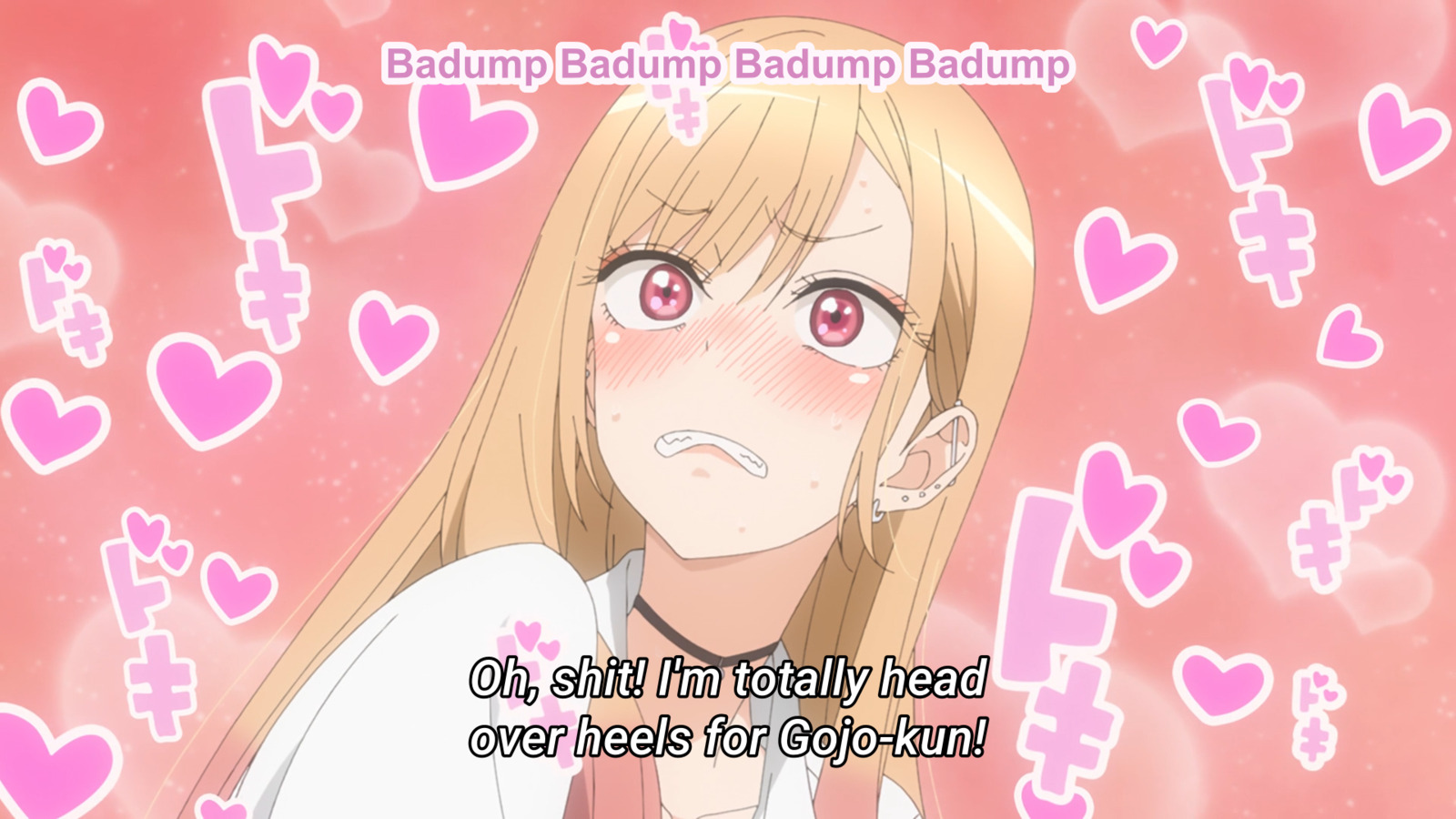 Încă de la început se vede că Gojo ține la Marin, ba chiar aș îndrăzni să spun că îi place de ea, dar povestea nu merge pe această rută. Pe la sfertul/jumătatea anime-ului încep să fie prezente, mai mult sau mai puțin, niște monologuri interioare din partea lui Marin și aflăm că aceasta se îndrăgosește de Gojo.