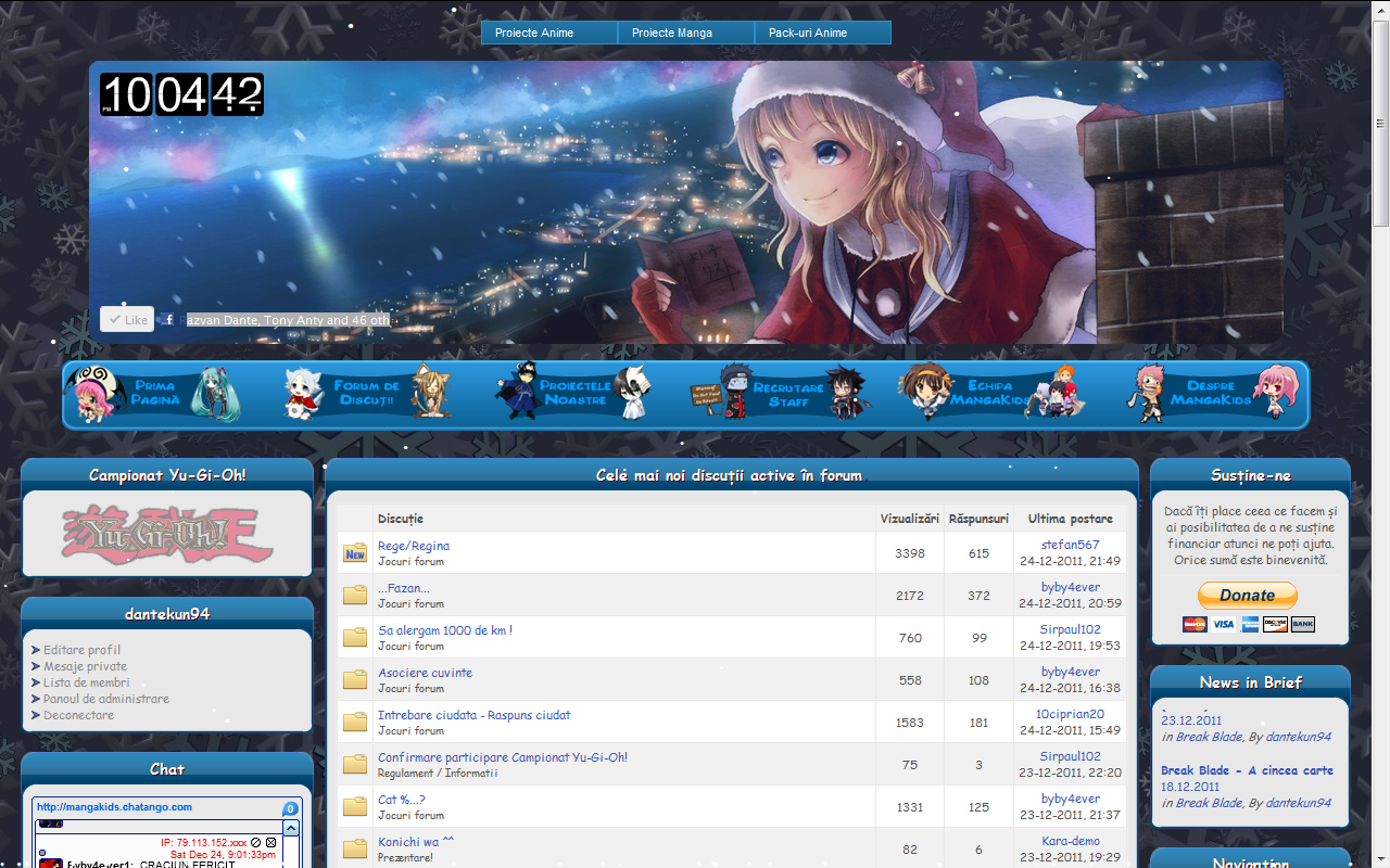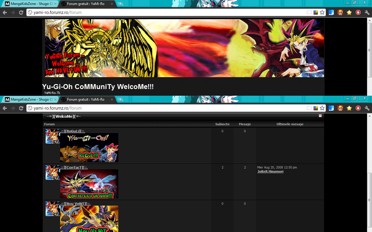 Alyss & Danté: De ce Manga-Kids? E o poveste amuzantă. Înainte de asta, aveam un forum numit MK-Zone, și, cum deja plătisem domeniul și host-ul, ne-am dus cu valul 😂! Îmi amintesc și acum când am schimbat banner-ul pe site-ul de CS 1.6 și aveam o struțocămilă cu anime și render-uri de CS 1.6 pe forum (am avut şi o idee de-a face un mod de Anime în CS 1.6 cu modele caractere din anime şi toate cele, idee care n-a văzut niciodată lumina zilei 😅). Am făcut o postare globală cerând sugestii pentru un nume care să păstreze inițialele MK, și cred că fiecare a venit cu o sugestie şi s-a ajuns la MangaKidsZone. Eram niște puști de 14-15 ani, și cu domeniul plătit pe un an… ne-am zis să mergem înainte!