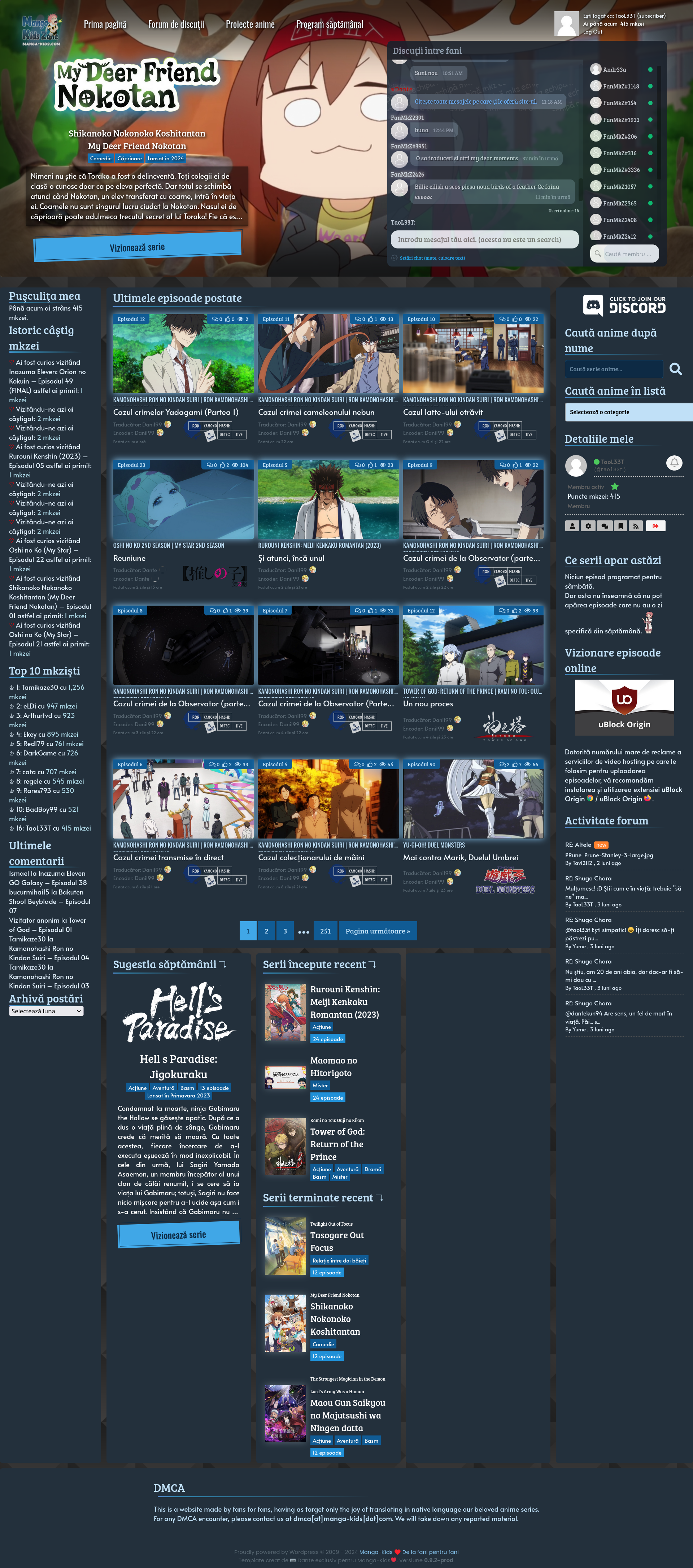 Danté: Ce am încercat să fac recent (de la începutul anului de când am revenit în forţă) a fost să aduc episoadele anime în limba română la o oră, maxim două distanţă de lansarea lor în limba engleză. Chiar dacă la început am mai greşit unele genuri (de câte ori n-am făcut-o pe Frieren bărbat sau pe Jinshin femeie…) şi am mai mâncat unele litere, recent aceste greşeli sunt din ce în ce mai rare, iar episoadele apar în aproximativ o oră de la lansare în limba română.